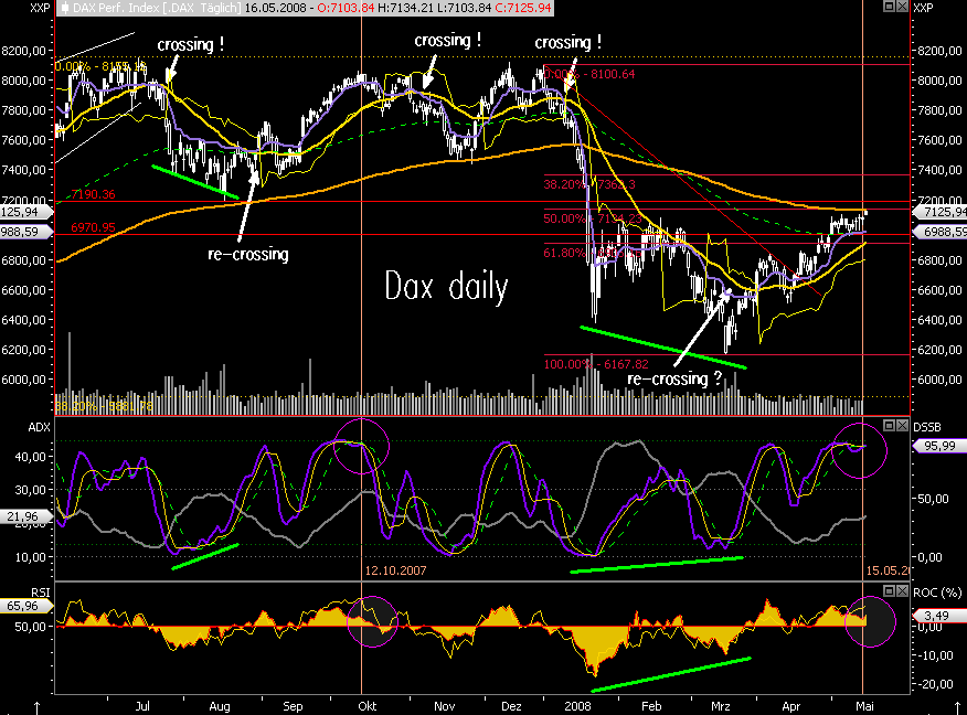 hab gestern mein oel short versilbert und bin noch short in gold, dax und dow. mein dax schein ko 7.150 brennt jedoch schon lichterloh (hoffe der übersteht den Mittag .-(