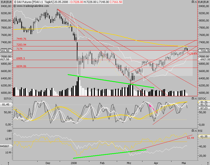 Abwärtsbewegung zwischen Juli 2007 und März 2008. Ein signifikanter Durchbruch