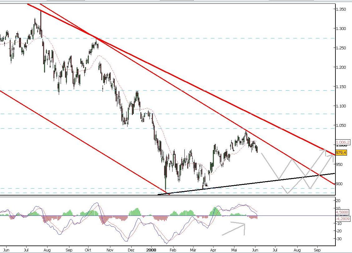 ...Sollte dann auch noch das letzte Verlaufstief bei 6.905 Punkten unterschritten werden, würde die elliott-technische Konstellation auf ein kurzfristiges Kursziel von knapp 6.400 Zählern hindeuten...