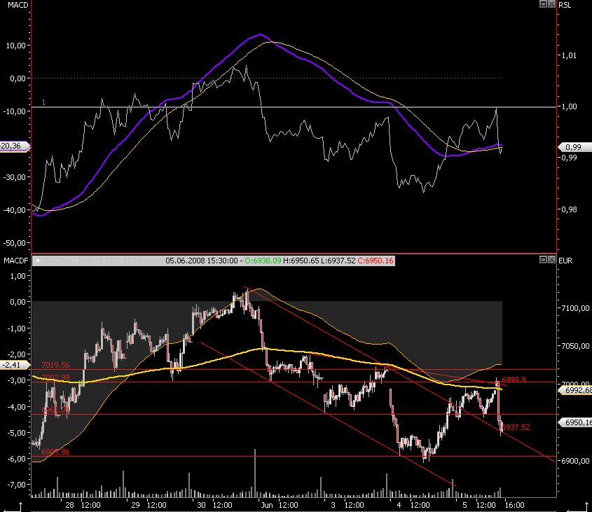 Der Dax geriet nach diesen Aussagen massiv unter Druck. Binnen weniger Minuten sackte er um mehr als 70 Punkte ab. Zur Stunde liegt der Leitindex mit 0,22 Prozent im Minus bei 6.949,88 Punkten.