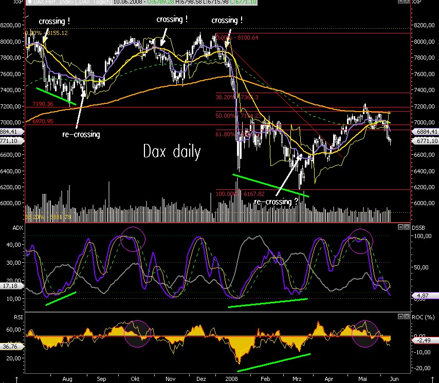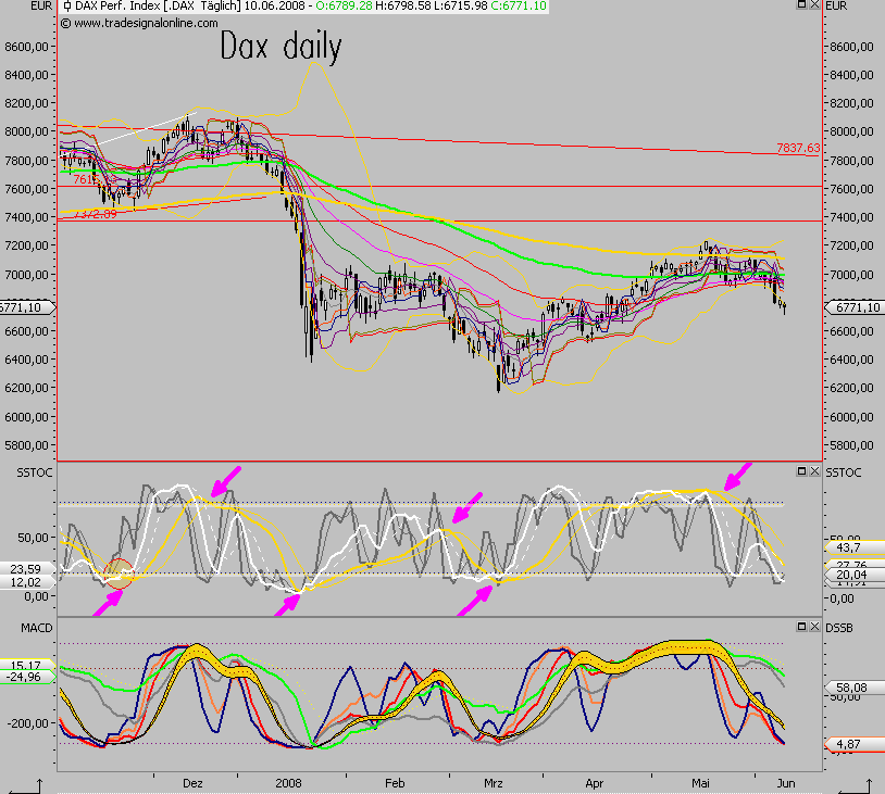 hatte ich früher doch auch gemacht, den ein oder anderen Gewaltszock mit verschwitzten Händen, Surren im Kopf etc...;-) letztendlich lasse ich dies seit längerem bleiben und wähle ausschliesslich weite(re) Scheine. Natürlich ist der Kapitaleinsatz entsprechend höher, da ich meist als Grundsatz 300 Punkte Abstand als Minimum zum ko wähle, wobei ich teils auch 500 Abstand nehme. Dies eröffnet auch die Möglichkeit bei Bedarf nachzulegen und sorgt für Ruhe in mir. KO habe ich jedenfalls seit einem knappen Jahr keinen mehr erlebt und auch ein Blick auf meine Statistik bestätigt die Strategie der weiten Scheine (wobei dies nicht mal eine Strategie, sondern einfach trading ist ohne zu zocken). Dokumentiere jeden Trade in Excel mit kk und vk, Gewinn, Verlust etc...und wenn ich mir die Performance von gestern und heute ansehe (nur mal als Beispiel genannt), dann sehe ich 9 positive Trades ggüber 1 negativen Trade. Womit wir wieder beim Thread of hardyman wären, Risk-Money-Management...natürlich könnten 9 Trades weniger Gewinn bringen als 1 Verlusttrade, klar. Aber wer seine eigenen Ziele setzt (vor einem Trade), muss wissen, wann der richtige Zeitpunkt des Ein- AUsstiegs ist. Und dies sollte auch konsequent eingehalten werden, ohne wenn und aber...Die Hoffnung stirbt zuletzt, heisst es so schön...in punkto Börse sehe ich dies anders...denn wer zum beispiel long ist, die Kurse purzeln und dann immer mehr die Hoffnung auf die Umkehr in einem ist...plötzlich stirbt der Schein und die Hoffnung mit...