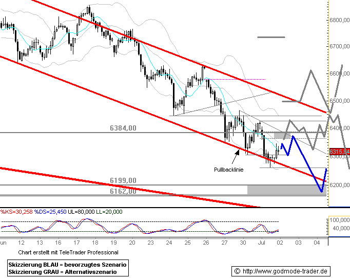 DAX - Tagesausblick für Mittwoch, 02. Juli 2008Datum 02.07.2008 - Uhrzeit 08:00 (© BörseGo AG 2007, Autor: Graefe Rocco, Technischer Analyst, © GodmodeTrader -
