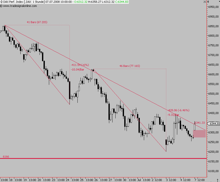 bin mir nicht so sicher, ob es heute wirklich noch zu einem stärkeren downmove kommt. Ich denke wir schließen heute noch das Gap und werden dann eine "Erholung" bis ca. 6380/ 6420 sehen, da dies m.E. die ersten Einsteiger auf Grund der gefallenen Rohstffpreise lockt. Aber auch ich glaube daß dann in Folge das Tief vom März noch gerissen wird.