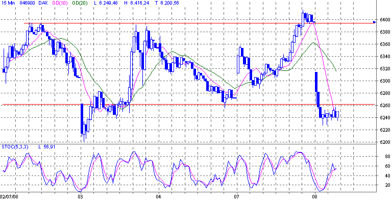 es gibt hier unten leider kein klares setup insofern sind wir Trader derzeit gezwungen nach dem Grundsatz: wenn, dann... zu handeln, der Markt ist stark News getrieben und dynamisch, darüber hinaus wird derzeit versucht durch Gerüchte den Trend zu beschleunigen oder entsprechende Volumenspitzen (oftmals stellen diese das Umkehrsignal zusammen mit Preisspitzen dar) auszulösen. Der Markt und auch die Marktteilnehmer können die Hiobsbotschaften bald nimmer hören, dennoch, heute nachbörslich beginnen die Earnings mit Alcoa, dann werden die Karten neu gemischt, vielleicht fehlt dem Markt noch eine Resignation, das ist schwer zu sagen, bis dahin haben wir unten 6200/6162 und darüber kann versucht werden, vermeintliche higher Lows zu fishen.