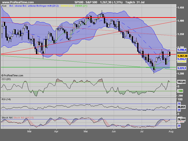 Stabilisierend wirkte dagegen der Einkaufsmanagerindex der Region Chicago, der im Juli überraschend zulegen konnte. Der Index sei saisonbereinigt von 49,6 Punkten im Vormonat auf 50,8 Punkte gestiegen, teilte die regionale Einkaufsmanagervereinigung von Chicago gegen 16:00 Uhr mit. Volkswirte hatten dagegen mit einem Rückgang auf 49,0 Punkte gerechnet.