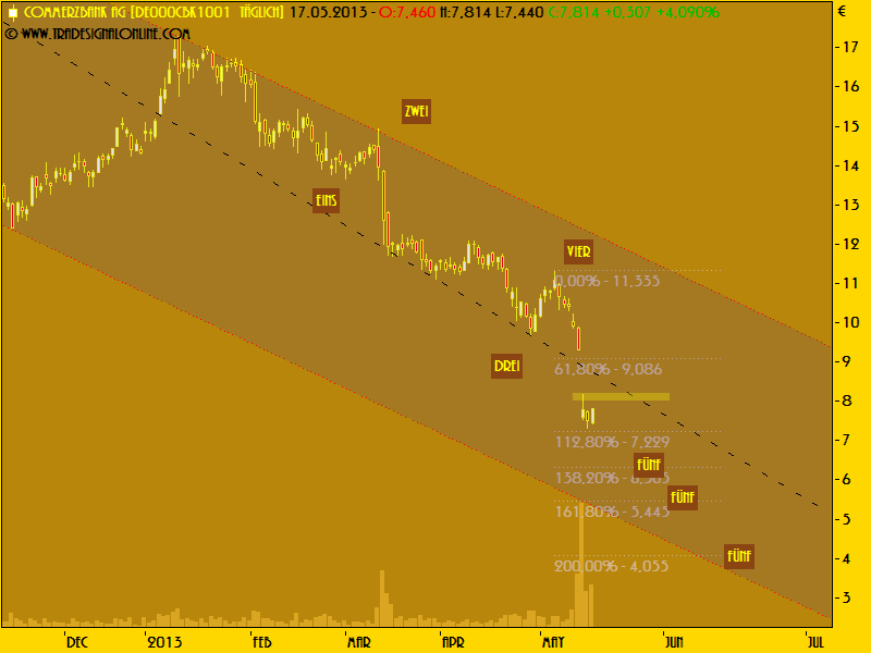Kurzfristig dürfte der Stellenabbau in den Filialen sowie Investitionen in Online-Banking und Technik zu mageren Ergebnissen führen. Langfristig sind die Chancen der Commerzbank auch durch die Übernahme der DreBa nicht zu verachten. 1200 Filialen beraten die Kunden bei allen finanziellen Fragen wie Kontoführung, Versicherung, Vorsorge, Geldanlage und Wertpapieren sowie Corporate Banking.