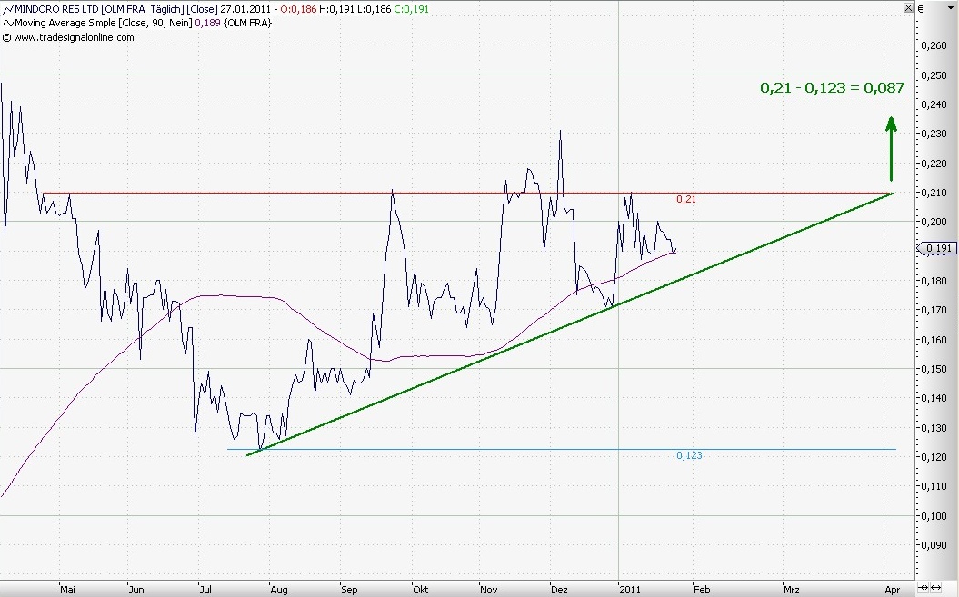 An agreement was signed on February 16, 2011, with Philippine company, RF Mining and Agro-Industrial Corporation (RF Mining) whereby Mindoro's Philippine subsidiary, MRL Gold Phils. Inc. may acquire a 100 per cent interest in an exploration permit application of 230 hectares covering an area of nickel laterite mineralization adjoining the ground acquired from Corplex Resources Inc. (announced January 12th 2011) and immediately west of the Tapian/Mamatfa area where Mindoro obtained promising nickel values in a road cut (announced October 14th 2010).