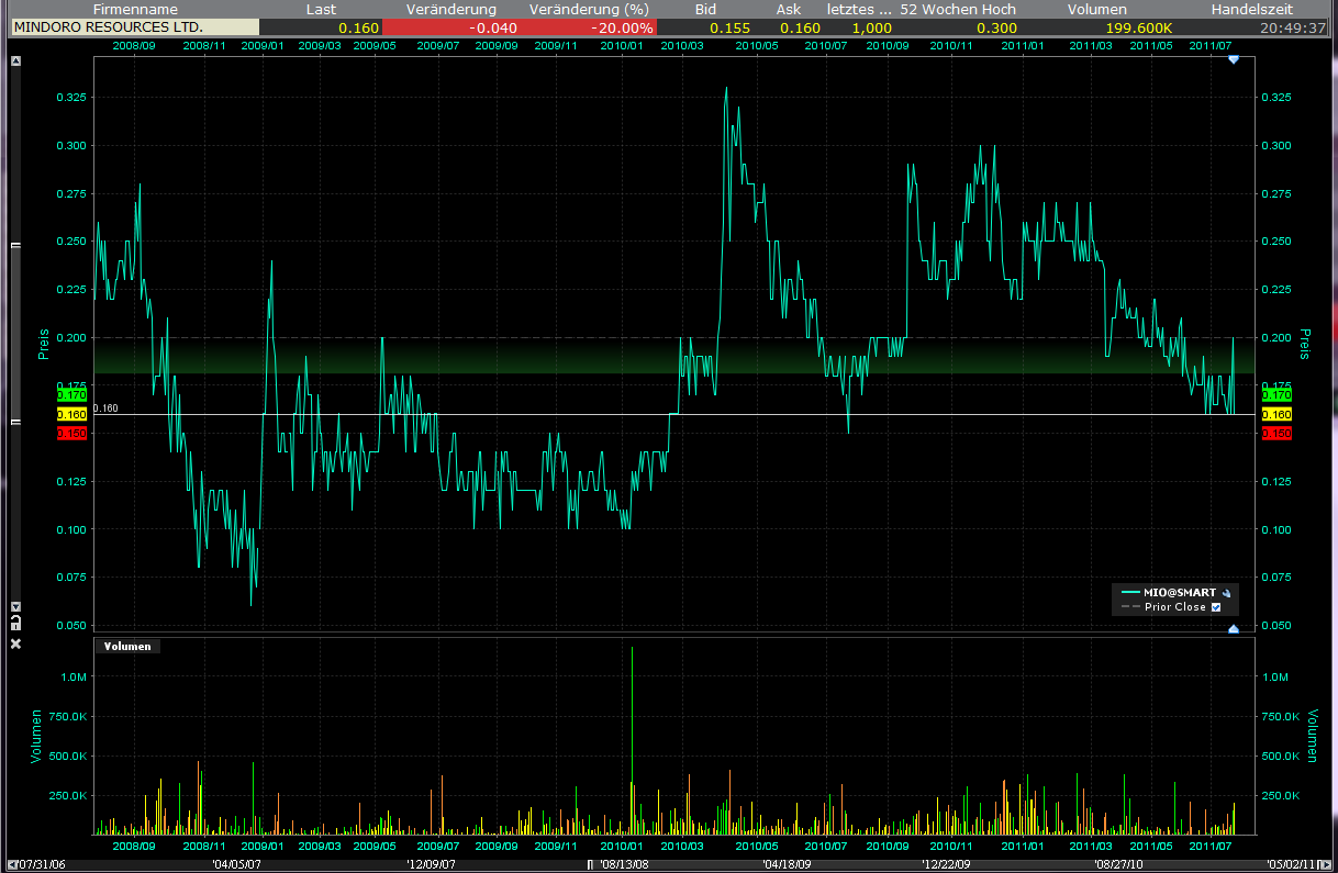 http://www.mindoro.com/s/...Intersections-From-Pan-De-Azucar-DrillingDie letzte news macht reinen Tisch zwischen Jon Dugdales australischen Ambitionen und den canadischen Ansprüchen. Schade finde ich, das Penny Gold Mindoro verläßt. Sie hatte die IR für die Performance 2005 – 2008 verantwortet. Die damaligen Kurse zeigen welch gute IR-Arbeit sie abgeliefert hat. Niemand ist unersetzlich! Die weiteren Änderungen im Board sind nur konsequent. Wenn es die Kanadier so sehen wie ich, dann haben sie damit keine Probleme, denn ich investiere in eine Story, wo die stattfindet ist mir egal, Hauptsache sie findet bald statt! :)))