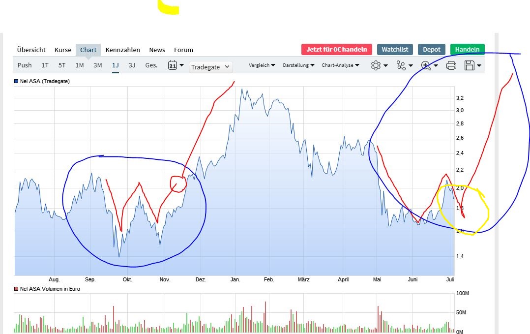 Sollte Nel es in Kürze über 2,00 - 2,10 € schaffen, dann gehts Richtung Allzeithoch und wir könnten in Q1 2022 zwischen 3,50 und 4,50 € sehen. Sollte Nel dann aufgrund guter Perspektiven noch mal als Tenbagger in Erscheinung treten, was ich durchaus für möglich halte, kann man sich ausrechnen, wo wir in 2 Jahren stehen.