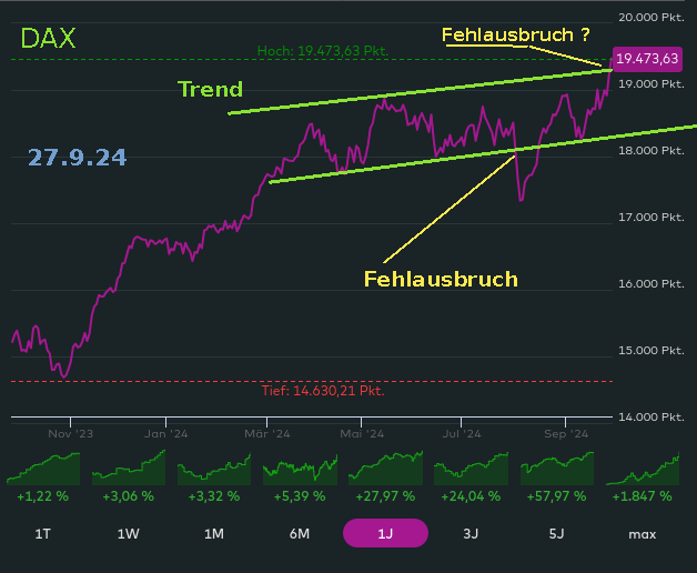 Geht erst mal runter bis 17.800 - das wird dann die Nackenlinie einer SKS-Formation, dann wieder hoch bis etwa dahin wo wir jetzt sind. Die US-Zinssenkungen kommen frühestens im September als Wahlkampfunterstützung, trotzdem werden sie verpuffen, wie auch etwaige weitere europäische Zinssenkungen. Nach den US-Wahlen, egal wie das Ergebnis wird, fallen die Indizes weiter und der DAX unter die Nackenlinie. Wo sollen denn noch höhere Gewinne herkommen. Staatliche Interventionen wird' s keine mehr geben und die Staatsverschuldung wird weiter zunehmen. Frankreichs Schuldenlast beträgt aktuell 110% vom BIP, Italien ähnlich schlecht - Maastrich-Kriterium für einen stabilen Euro war mal 60%. Alles keine guten Nachrichten, weder für Aktien, noch für Anleihen. Bis nächstes Jahr im März, wenn die neue US-Regierung eingesetzt ist, würde ich überhaupt nicht investieren. Ende Juli, Mitte August kommt die letzte Gelegenheit zum Ausstieg. Es ist ein typischer Hype. Rheinmetall, SAP, die Banken und Versicherungen überbewertet. Seht euch BASF an, die zeigt, das der Gesamt-Index gedreht hat. Für dies Jahr war' s das, nur noch mit fallenden Kursen ist Geld zu verdienen. Rheinmetall ist nur deshalb so teuer, weil staatlich gefördert. Wenn im Herbst die Querelen um den nächsten Bundeshaushalt beginnen, wird auch hierzulande klar, dass die Staatsverschuldung zu hoch ist. VW und BMW setzen für ihre US-Werke auf Lieferanten aus China, die uigurische Zwangsarbeiter einsetzen. Aus ethischen Gründen verbietet sich ein Investment in beide Unternehmen, egal wie hoch die Gewinne sind. Nicht ein einziges Produkt würde ich von denen kaufen, selbst wenn's die einzigen wären, die Kernseife herstellen.
