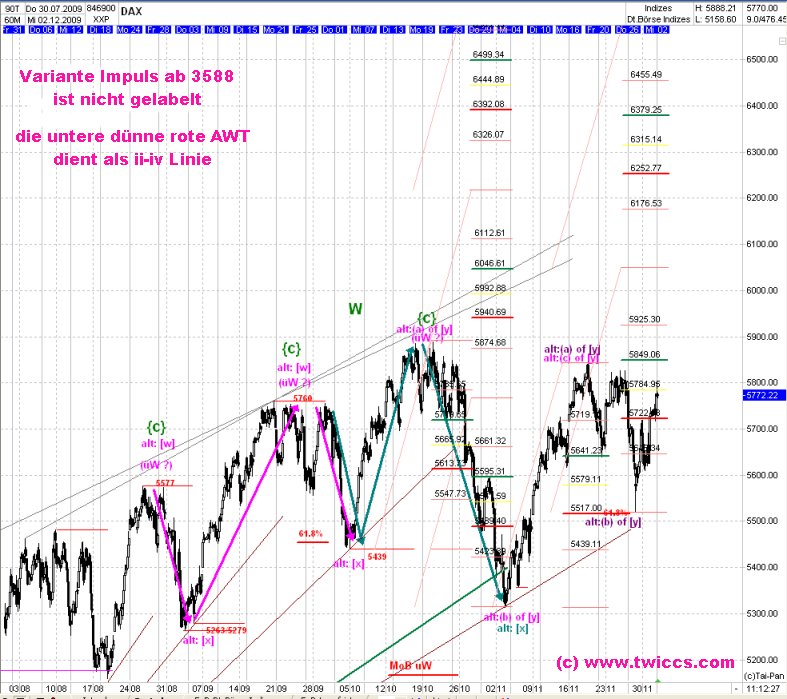 Aber auch die Alternative, daß der DAX sich in einer iii/c' aufwärts befindet darf nicht gänzlich außer acht gelassen werden.