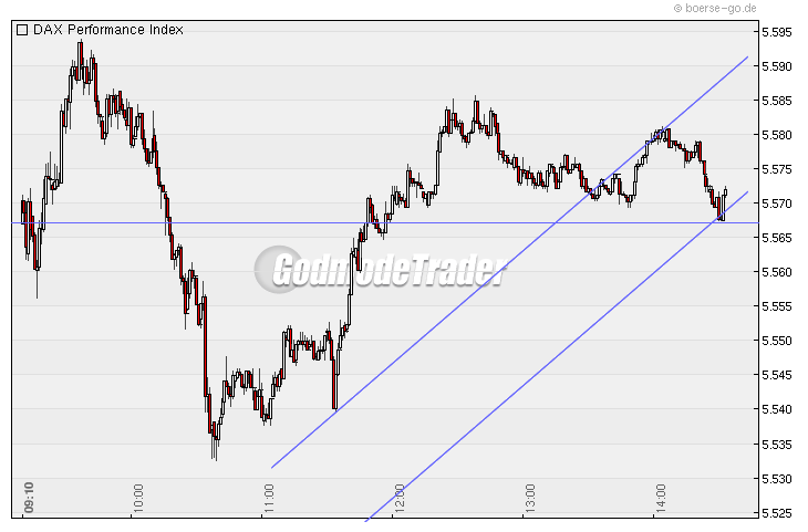 Der "Hammer" wäre ein bis zum Freitag (triple witching day) in einer Range 5500-5600 seitwärts laufender DAX.