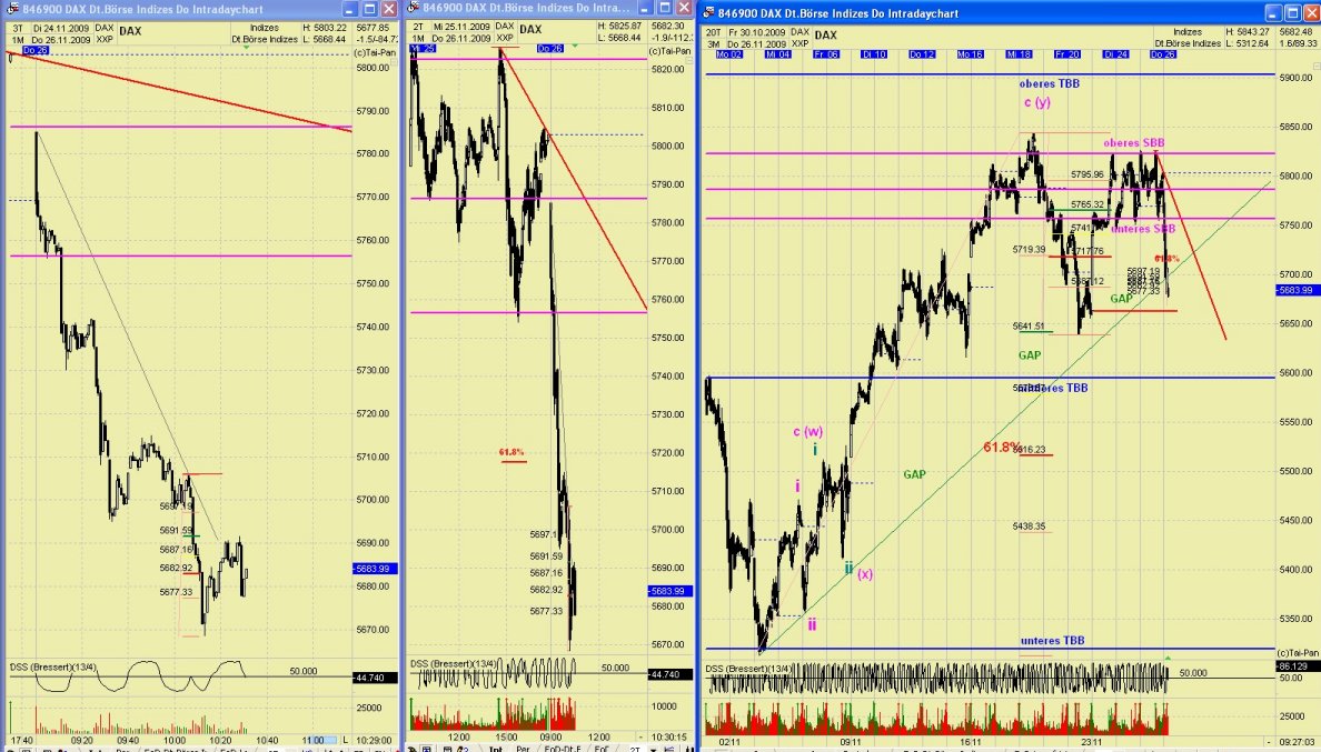 10:15 Die Korrektur hielt nicht lange. Wiedereinstieg Short bei Unterschreiten der 5698 für 25 Punkte.