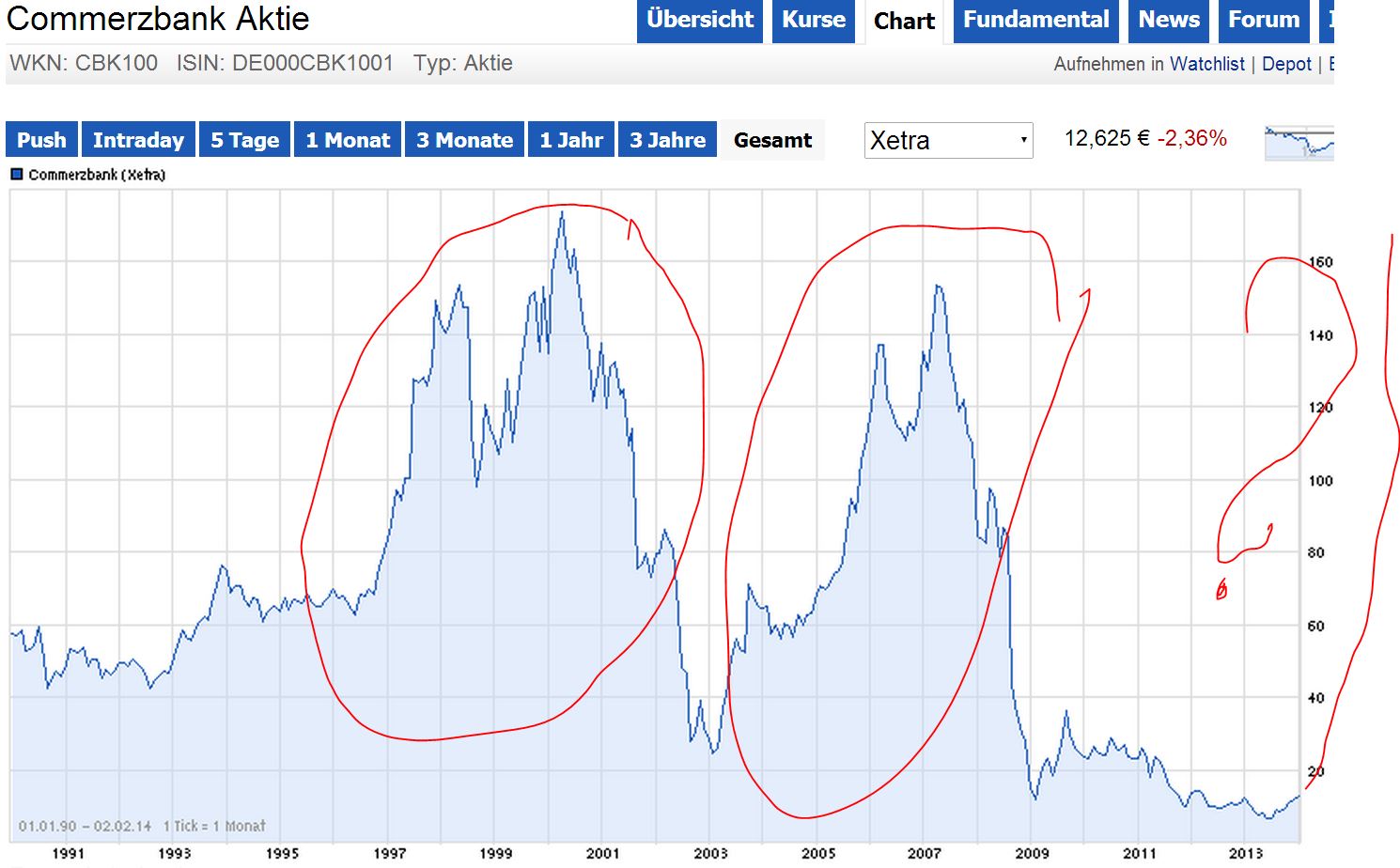 Guckt euch z.B. die Telekom Aktie zwischen 1999 und mitte 2000 an! Das nenne ich eine Blase!