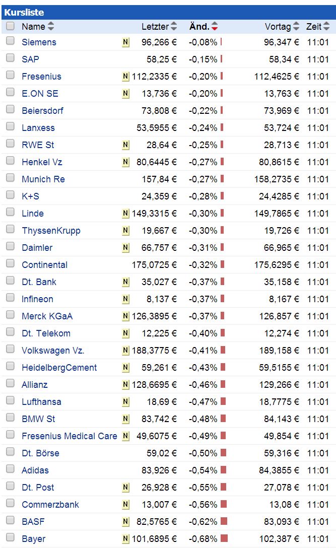 | Fallender DAX-Kurs | 5,00 | 9,98 | 15,01 | |