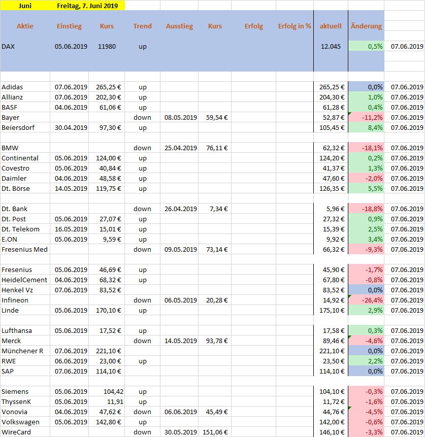 Die Einstiegs- und Ausstiegszeitpunkte sind ausschließlich charttechnische Entscheidungen. Die Investments können mit ihrer Performance im öffentlichen Depot - "DAX 30 - die besten Monatsperformer" mitverfolgt werden.