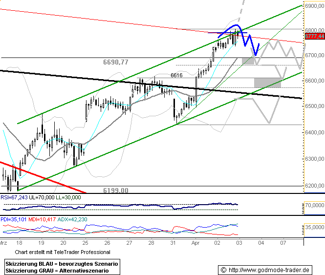 Intraday Unterstützungen: 6.845/6.865 + 6.750/6.770