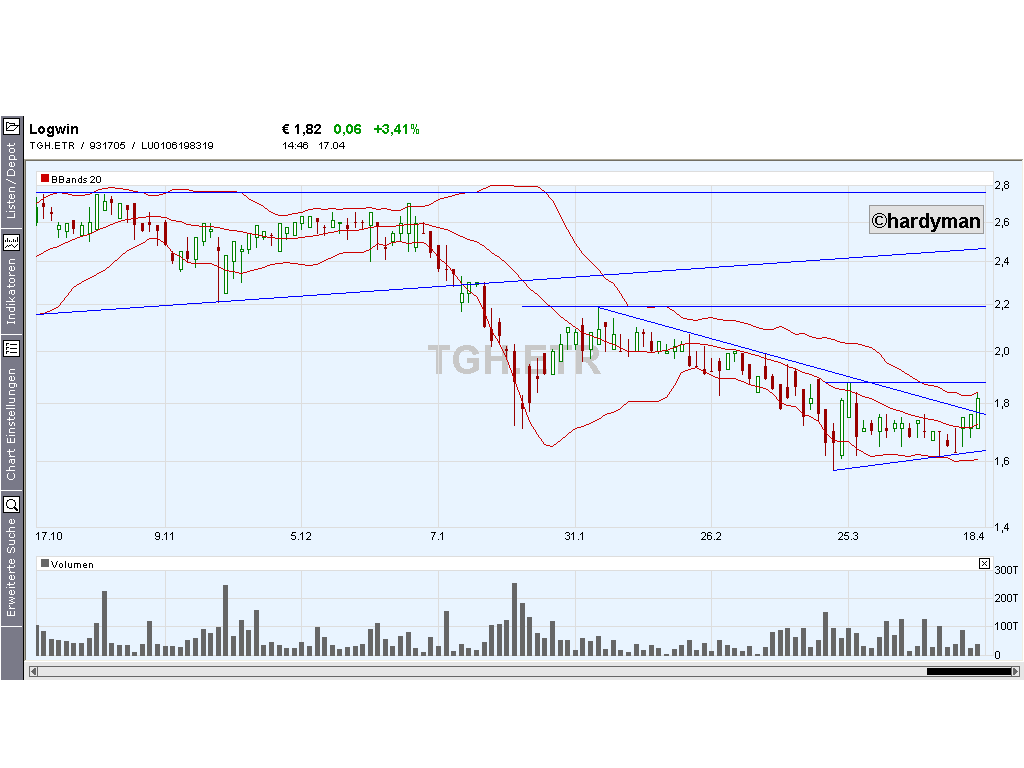 Hier könnte man versuchen so zwischen 2,20 und 2,10 Positionen aufzubauen mit Absicherung knapp unter 2 Euro.