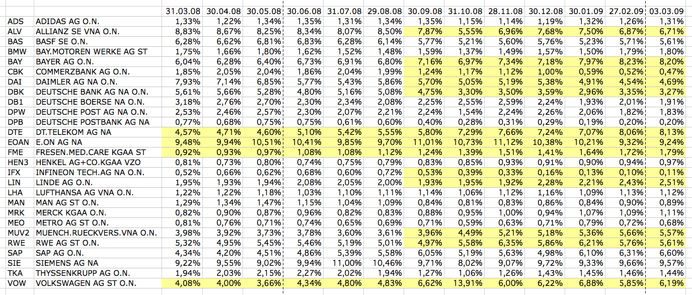 Berücksichtigt sind nur die titel, die durchgängig von März 2008 bis heute dabei waren.