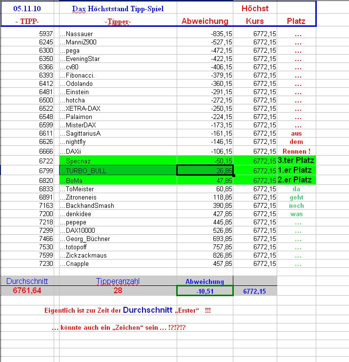 einige höhre ich sagen - klar habe ich das gewußt der DAX steht da wo ich es mir gedacht habe. und der Beweiß dazu... klar hier beim DAX Hoch Spiel 2009