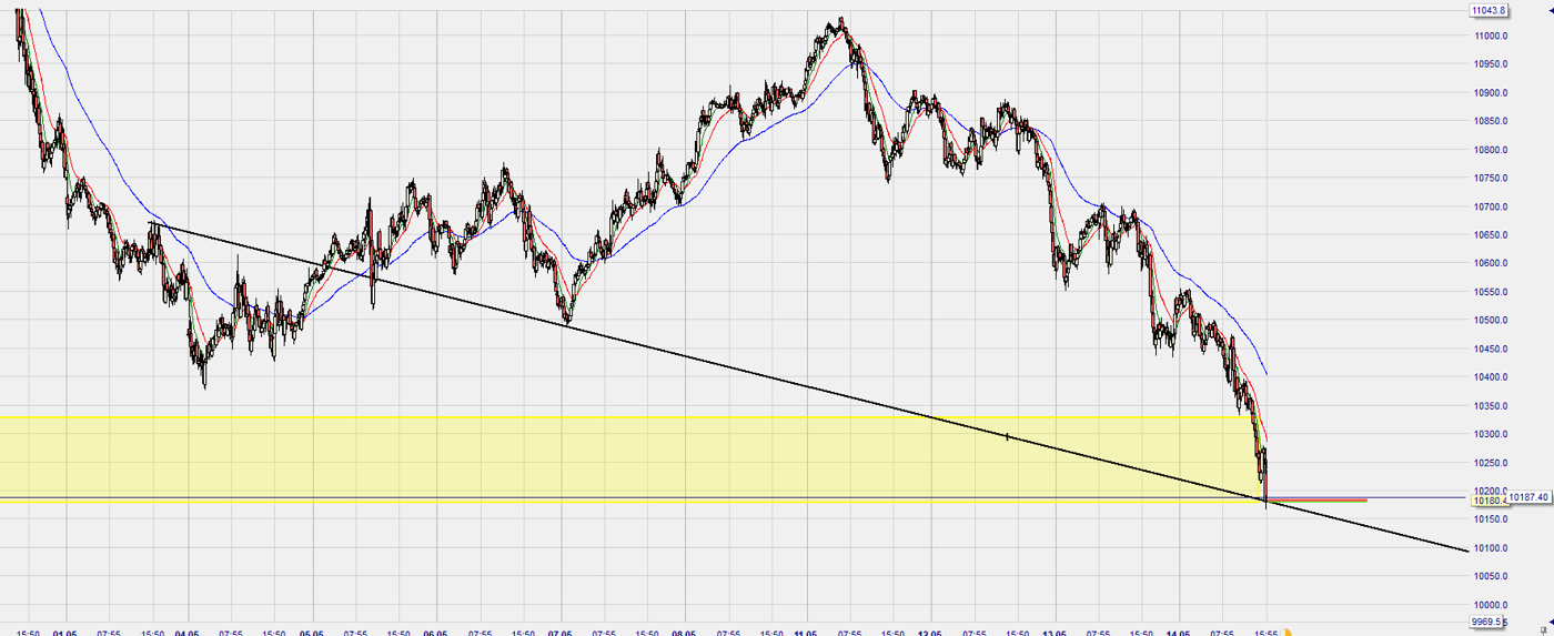 Die Bärenmarktrally ist vorbei. Ich lehne mich mal weit ausm Fenster: Es steht 5 NACH 12, Game Over FED, alles Gelddrucken wird bald nichts mehr helfen. Alle 3 Bullenaktien, sind vergangene Woche aus ihrem Aufwärtstrend (rote Unterstützungslinie) ausgebrochen. Ihr wisst nun was in den nächsten Wochen auf uns zu kommt. Die Volatilität wird ein Comeback feiern.