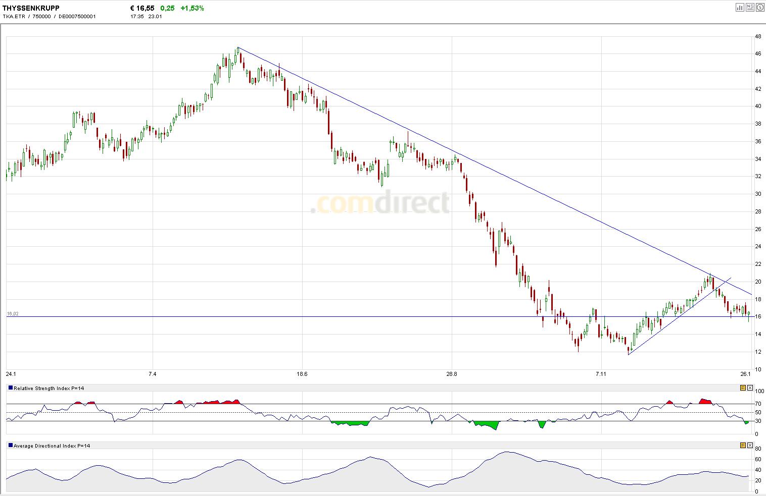 Wenn man sich die längerfristigen Charts dieser drei bedeutsamen Indizes anschaut, so bleibt die Grundtendenz nach wie vor abwärts gerichtet. Damit beantwortet sich die Frage, wie man treden soll. Im kurzfristigen Bereich kennen wir die teils sehr ausgeprägten Kursfluktuationen und Kursoszillationen, die mitunter in ein sehr angespanntes Verhältnis zum Risiko münden. Das führt zu der Schlußfolgerung, dass man nicht gegen den "Grundtrend" traden sollte. In der Tat kann es die bessere Alternative sein, das Geschehen von "außen" zu beobachten und vielleicht bei der einen oder anderen günstigen Kaufgelegenheit Positionen aufzubauen.