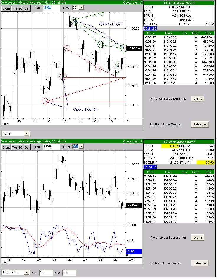 Dow hat gestern zum Schluß ein Open Long generiert und daher gehe ich von einer festen Eröffnung aus die uns max. in den Bereich des Open Longs oben führen sollte. Im Handelsverlauf sollte der Dow dann fallen min. bis zum 1. Open Short und max. bis zum 2. Open Short + Übertreibung!!!