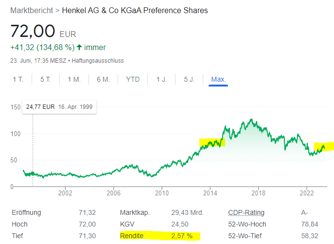 Der Kurs ist jetzt auf dem Stand von 2013. Das Ganze bei einer Dividendenrendite von 2,57%. Angesichts der Inflation und der insgesamt bescheidenen Aussichten für den Wirtschaftsstandort Deutschland ist diese Aktie für mich als Investment mittlerweile völlig uninteressant geworden.