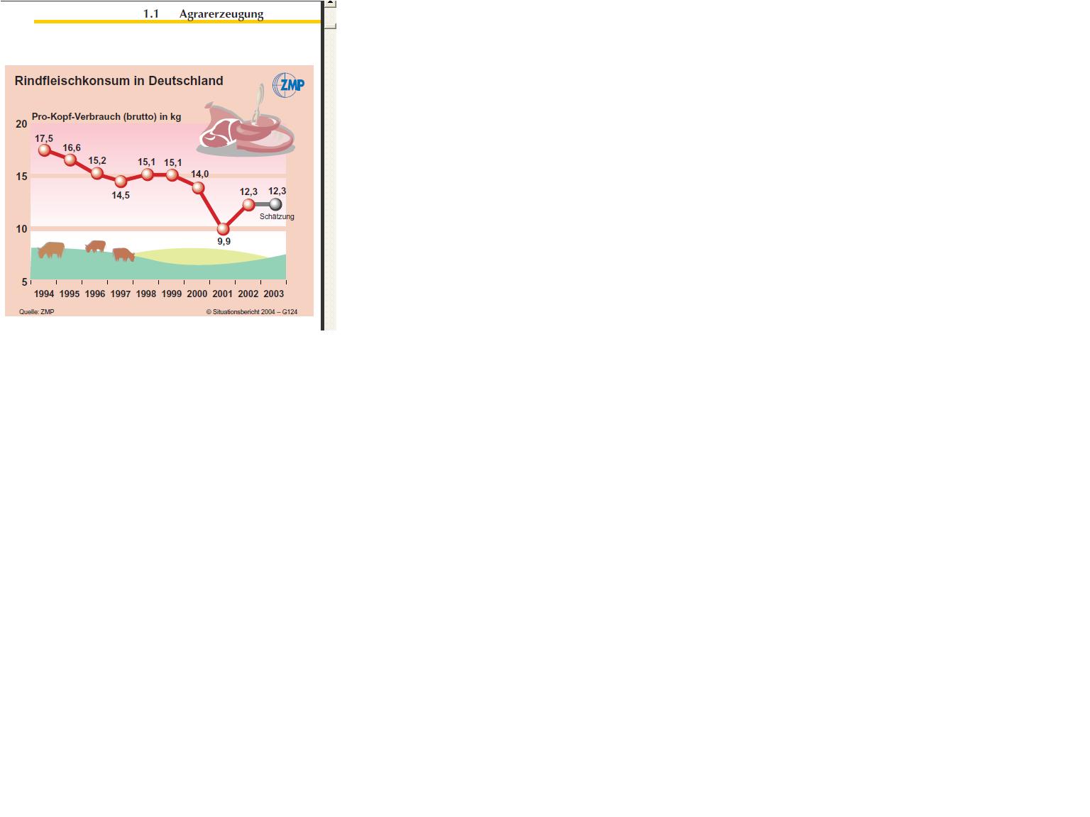 hier die Zahlen & Beleg für meine obiges Statement betreffend Rindfleischkonsum 1994 - 2002. Seite 15 von http://edok.ahb.niedersachsen.de/07/365398187/2004.pdf :