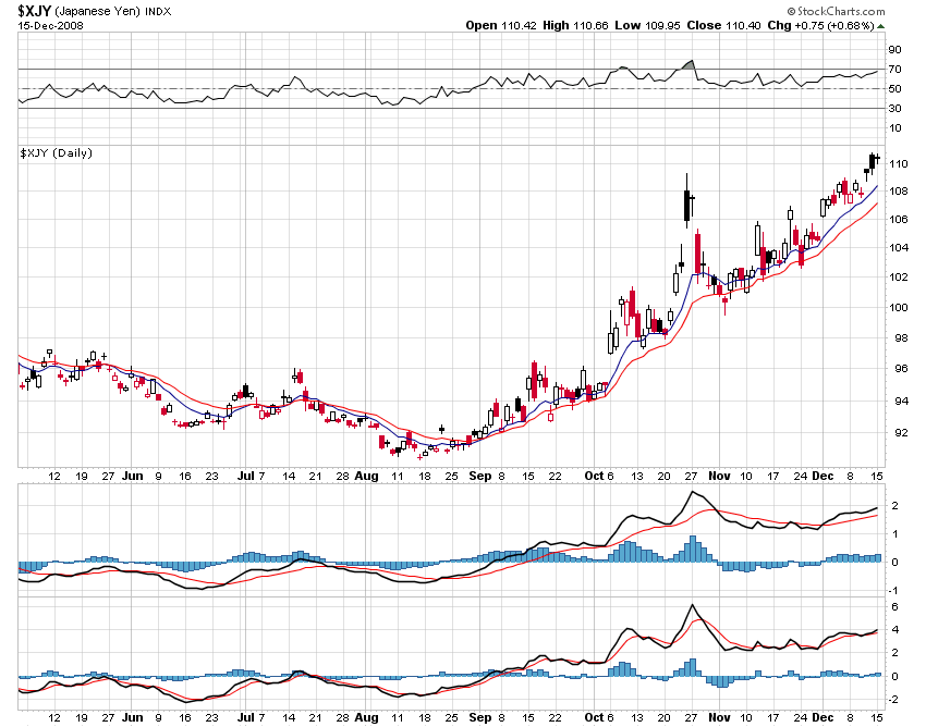 Wir sehen demnach zurzeit eine kleine Erholungs-Rallye in allen Assetklassen inkl. EUR/USD, die jedoch nur eine technische Korrektur im übergeordneten Downtrend ist. Die Höchstkurse bei Bonds (Nullzinsen bei 10-jährigen) sind ein Warnsignal, dass diese Rallye "auf tönernen Füßen steht". Hintergrund der Bond-Hausse ist Angst - u. a. vor weiteren großen Pleiten in USA (Big Three u. a.). In einem solchen Umfeld steigen Aktien "normalerweise" nicht. Dass sie dieser Tage dennoch hochgehen, verdanken wir mMn dem Großen Verfall am Freitag. Außerdem versuchen die Großen Fonds, die Kurse vor Weihnachten noch ein wenig hochzutreiben (auch mit Future-Buyprogrammen), um ihren Kunden im Januar keine Jahresauszüge mit 50 % Kursverlust verschicken zu müssen.
