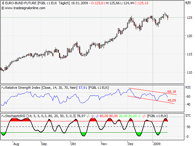 Ich persönlich werde meine BuFu-Short bei einem Bruch der Trendlinie (ca. 124) nochmal aufstocken. Eine evtl. nochmaliges Top sitze ich aus, da der Short (Strike 136) recht weit ist. (Anders als permanents short mit einem Harakiri-Hebel - aber das muss er selbst wissen ;-). Wenn's klappt ist er ja reich...)