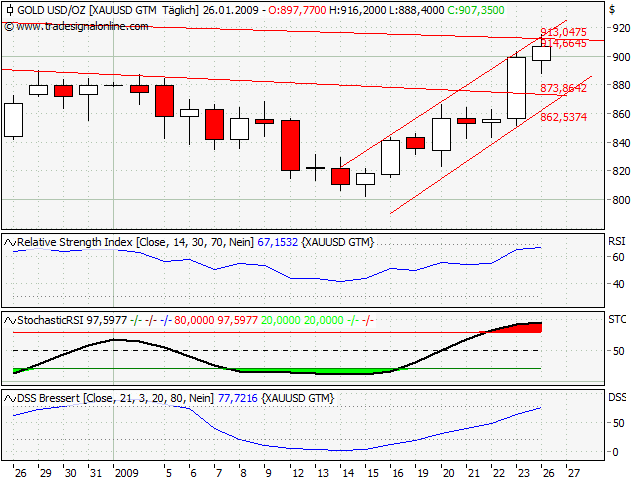 2008 bei 1.031 USD begleitet. Gelingt der Sprung über diese Hürde, wäre die Konsolidierung