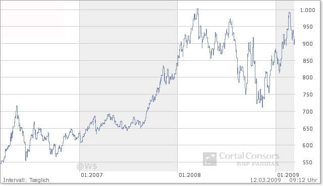 Ganz anders dagegen am Warenterminmarkt. Hier wird zwar eine standardisierte Menge angeboten, aber es handelt sich immer um neue Ware. Wenn abgeschätzt wird, dass zu einem gewissen Terminen ein höheres Angebot im Markt sein kann oder die Nachfrage höher sein kann, dann werden sich dort Auf- oder Abgelder zusätzlich zu den Zinskosten einstellen, siehe bspw. Ölmarkt. Beim DAX ist das nicht möglich.