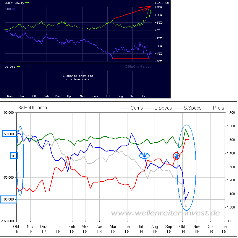 Kurios dabei: Nahezu alle großen deutschen Fonds gingen in den letzten Tagen dazu über, Aktien in ihren Portfolios überzugewichten. Grund dafür sind die immensen kurzfristigen Chancen, die die aktuellen Marktschwankungen mit sich bringen. Victor Moftakhar, Leiter der Aktienfonds bei der zu den Sparkassen gehörenden Deka, spricht offen von einem taktischen Übergewicht. Da die Marktschwankungen aber extrem sind, kann sich das auch rasch wieder ändern. Gleichwohl ist er sich sicher, dass die Unsicherheit solange bestehen bleiben wird, bis erkennbar sei, wie stark und anhaltend der globale Wirtschaftsabschwung infolge der Finanzkrise ausfallen wird.
