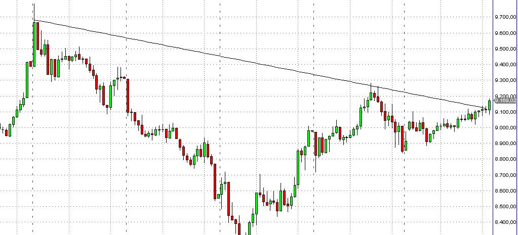 Allerdings sowohl positiv als auch negativ. 2 Aussagen könnten die Richtung weisen: geplante Zinssenkung und positive Entwicklung bei den Refi-Sätzen (Spreads-Einengung). Dazu noch ein bisschen Selbstlob für das Bankenbeteiligungsprogramm und schon ist die Rally am Laufen. Kurz vor den Wahlen.