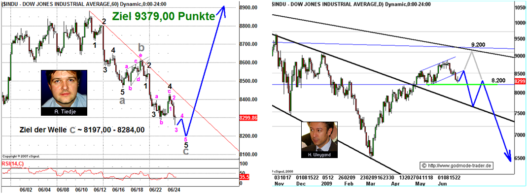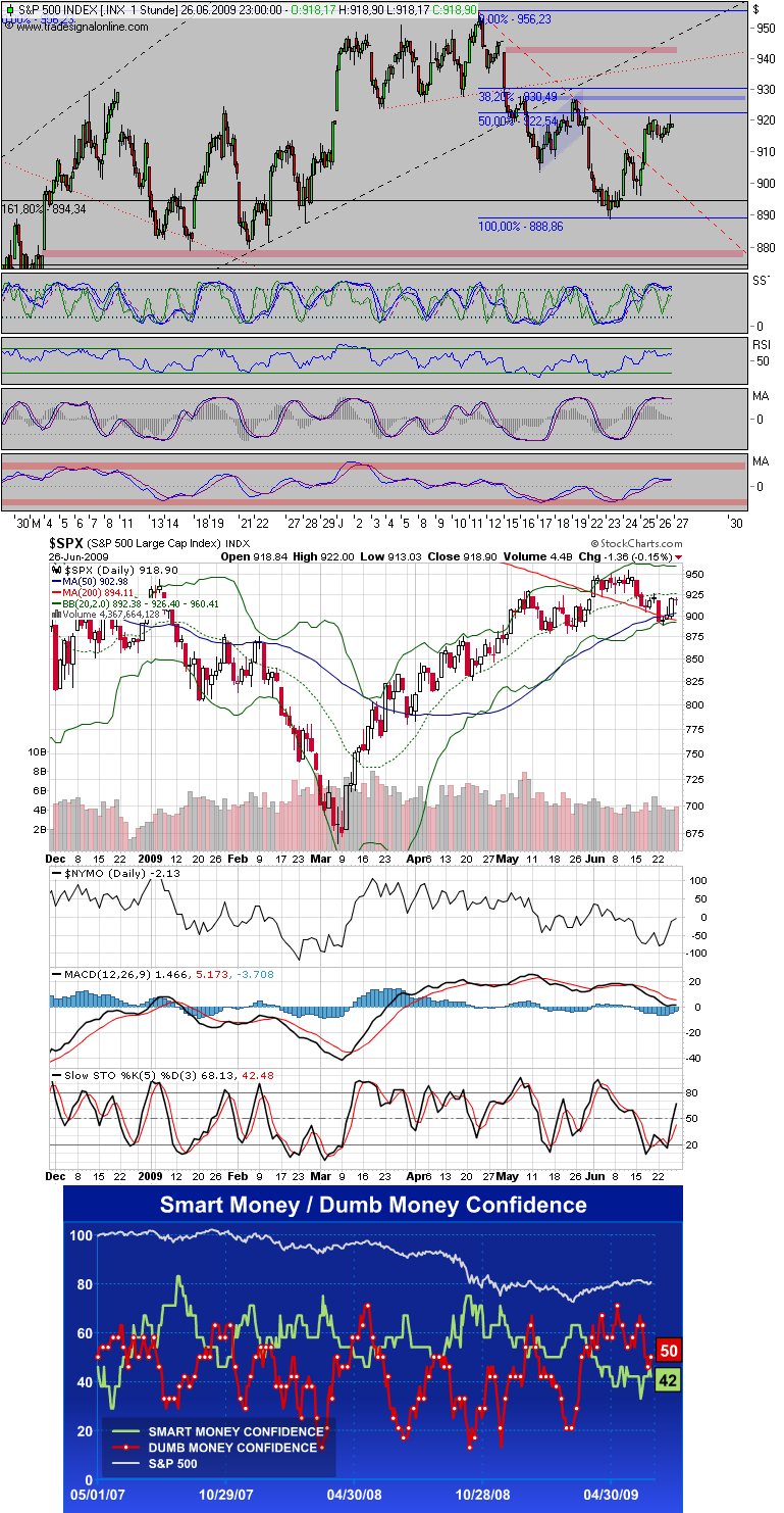 Vorgezogenees P.S. Mein Ausblick: Ich denke es wird seitwärts laufen. Ende Juni kommt GM aus der Insolvenz und es gibt einen großen Knall an den Börsen. Dann ein Ausbruch nach oben, auch wenn GM später rauskommt als Juni mit anschließender Korrektur, welche dann auf 3 Monatssicht uns insgesamt einer Seitwärtsbewegung mit geringem Anstieg ähnelt. Dann wird zum Ende des Jahres, nach der Bundestagswahl der Hammer in Europa rausgeholt und Porzellan zerschlagen. Hier sehe ich wie du einen Dämpfer, der sich aber nicht auf die USA auswirken wird. Also DAX mit down-move und DJ mit weiteren geringen Kursgewinnen. Im Jahr 2010 sehe ich dann Kursgewinne. Denn Ölpreis sehe ich stabil um ca. 70 bis 80 Dollar pendeln. Grund ist dafür Marktpolitik, denn diesen Preis brauchen die Ölförderstaaten und Ölkonzeren für ihren Break-Even-Punkt.