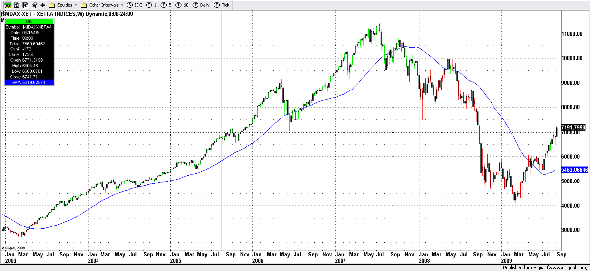13. September 2009 Es ist ungewöhnlich, aber an den Finanzmärkten steigt derzeit alles: Die Aktienkurse legen zu, die Nachfrage an den Anleihemärkten hält unvermindert an, die Notierungen der Rohstoffe klettern in die Höhe, und selbst der Goldpreis ist über die Marke von 1000 Dollar die Feinunze ausgebrochen. Einzig und allein der Wechselkurs des Dollar gibt nach – seit März um mehr als 10 Prozent. Ende der Woche kostete ein Euro rund 1,46 Dollar. So schwach war der Dollar gegenüber der europäischen Gemeinschaftswährung seit Mitte Dezember nicht mehr. Der Aufschwung an den Börsen seit März ist rasant. Die großen Indizes an der Wall Street und in Europa haben um mehr als 50 Prozent seit ihren Tiefs im Frühjahr zugelegt. Der deutsche Aktienindex Dax schloss die Woche mit kräftigen Gewinnen über der Marke von 5600 Punkten.