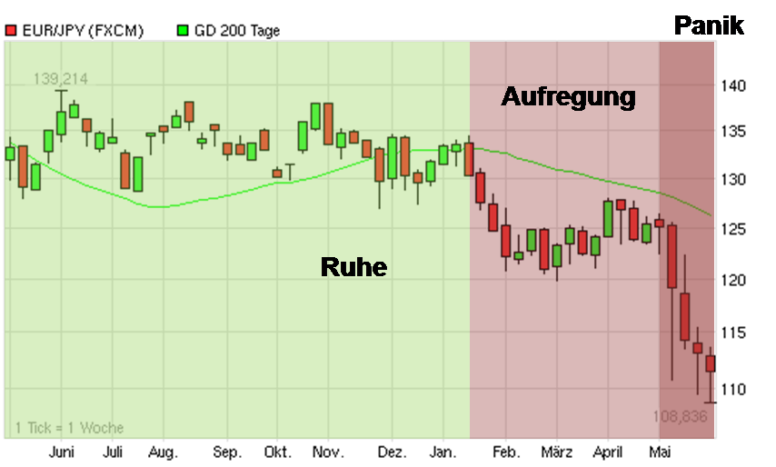 Der wahre Grund, warum es runtergeht ist folgender: Trader A nimmt Gewinne mit, was Trader B sieht. Der denkt: Hmmm, Trader A verkauft wegen Köhler, dann muss ich auch verkaufen. Trader B verkauft, was Trader C bemerkt, usw.