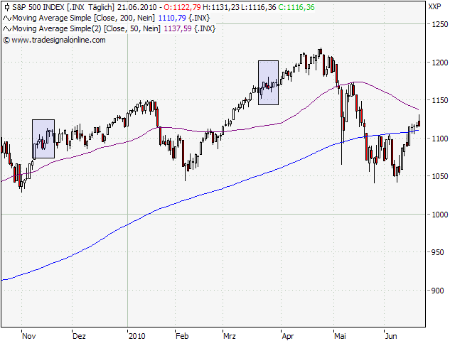 Denn der Dax und der Mdax haben im April ein neues Hoch erklommen und heute wieder touchiert. Es geht beim Dax und Mdax NICHT seitwärts, sondern leicht up (higher High, higher Low seit Herbst 2009). Siehe Chart.