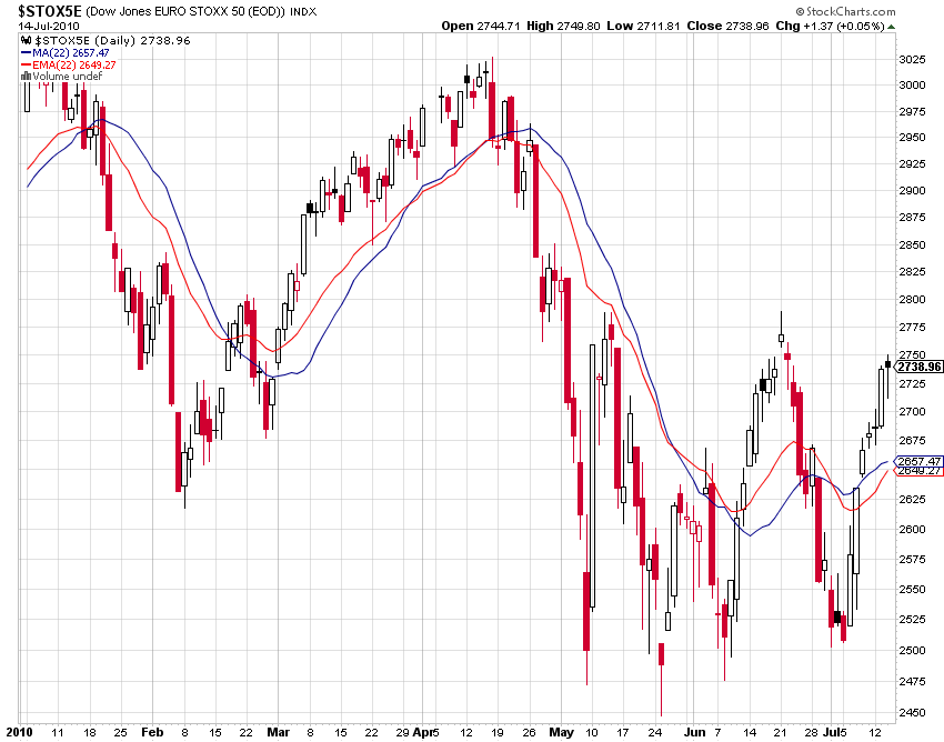 Fazit: Der Sommer-Seitwärtsmarkt ist weiter intakt, die Entscheidung (sicherer Ausbruch nach oben) wird noch auf sich warten lassen. Was aber auffiel, war die allgemeine Ratlosigkeit in den letzten Tagen: Warum steigen die Kurse und die Gewinne, wenn doch die Konjunkturindikatoren angeblich nach unten zeigen? Antwort: Weil die Börsianer die Zukunft handeln. IFO läßt grüßen...