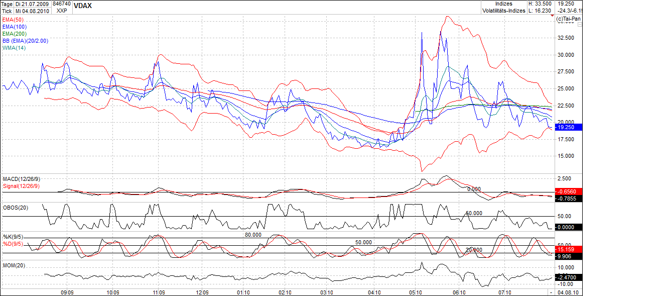 Der Vdax ist damit ein NACHLAUFENDER Indikator. Und da beim Dax selbst zur Zeit nix rappelt kann auch beim Vdax nix rappeln. Im Gegenteil, dass er nach unten durchbricht ist quasi vorprogrammiert, schau ich mir die Daxkurse der letzten Tage an.