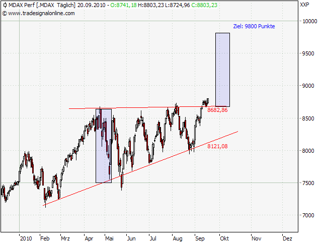 Im großen Bild sahen wir einen starken Rebound 2009, der 2010 verdaut werden musste. Die Bären haben es in 9 Monaten nicht geschafft, die Aktien signifikant zu drücken, daher muss es nun aufwärts gehen, getreu dem Motto: Was nicht fallen kann, muss steigen.