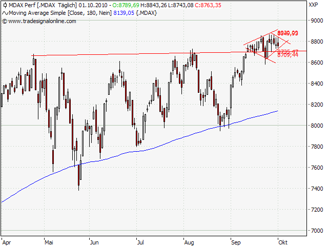 Das war das Signal und ist für sich ausreichend. Die Beachtung von Trendlinien übergeordneter Zeitebenen, Fibonacci-Retracements, Elliotwellen kann man für die Optimierung von Ein- und Ausstiegen nutzen.