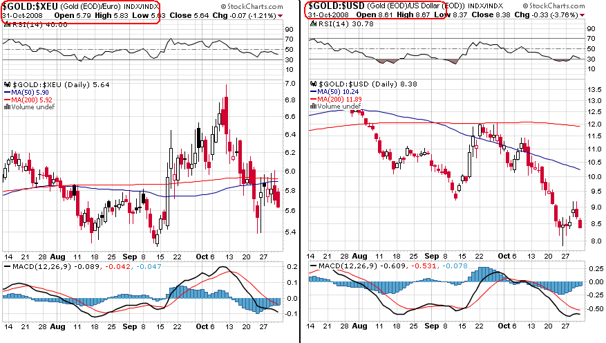 In diesem Monat ist der S&P 500 um 23% gefallen, da ist es kein Wunder, dass der brutale Sell-Off auf dem Aktienmarkt die volle Aufmerksamkeit der Investoren auf sich zieht. Aus diesem Grund ist der Goldkurs zur Zeit im Keller. Bis jetzt ist der Goldkurs in diesem Monat um unglaubliche 15,6% gefallen! Zusammen mit der großen Angst um die Aktien hat dies zu einem undenkbaren Crash von 46,4% im HUI-Goldaktienindex im Oktober geführt.
