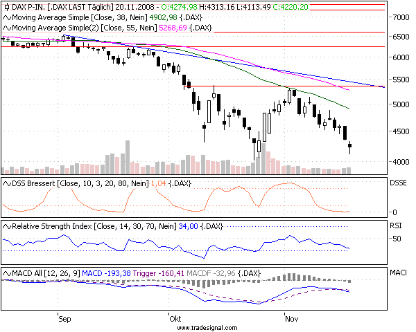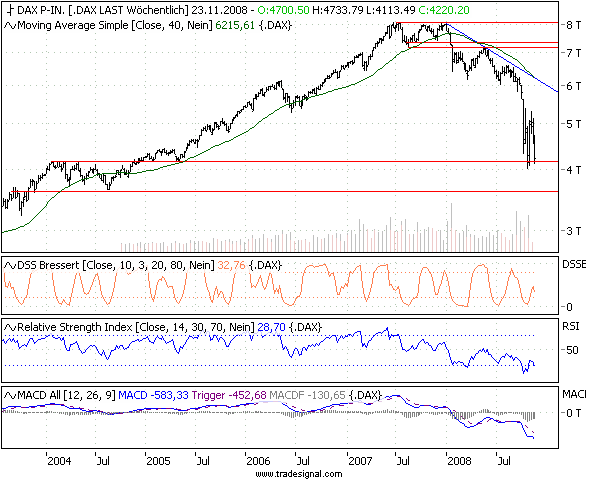 ….. Selbst die Maxime des antizyklischen Investierens, "Kaufen, wenn die Kurse stürzen", kann derzeit nicht viele Anleger locken. Denn der Dax kann auch nach dem aktuellen Sturz um rund 50 Prozent noch tiefer fallen, wissen die Anleger, denen der 80-Prozent-Crash der Jahre 2000 bis 2003 noch in den Knochen steckt……