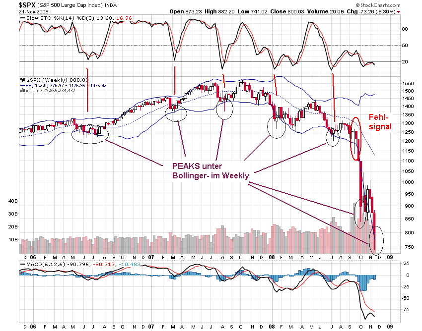 Dein "Stimmungsumschwung" am Donnerstag fiel offenbar mit dem Bruch der Langzeitunterstützung im SP-500 zusammen. Er fiel unter die kritische Marke von 770. Das war im chartverliebten Amerika natürlich ein "klares Verkaufssignal" - und ehe man sich versah, stand der SPX bei 740.