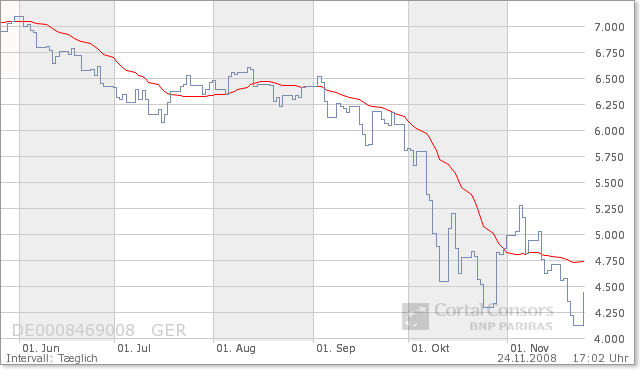 Das was die Kurse und damit die Jahresendrally derzeit stützen könnte sind positive Aussichten über das Jahr 2009 hinaus. Ich glaube aber, dass allen regelmässigen Thread-Postern es mittlerweile klar ist, wie wenig Wachstumspotenzial zu erwarten ist.