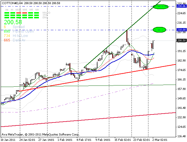 ...wäre ein guter Griff gewesen, wenn ich ein bißchen mehr Mut gehabt hätte. Hab meine ins Plus gelaufene Position zu eng abgesichert und bin sofort wieder ausgestoppt worden (siehe oben). Aber ich denke die Charttechnik können wir vergessen. Baumwolle wird massiv gekauft, wenn es positive Meldungen gibt (siehe US Daten vorgestern oder was Positives zu den Ägypten und Co.) und stark verkauft, wenn es runter geht mit den Indizes usw (siehe heute Abend).