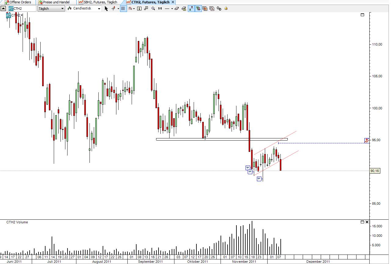 Heute wurde Tageshoch im Dezember Kontrakt bei 104 gemacht, um dann wieder auf 103 abzutauchen. Auch wenn ich jetzt Long bin, so gesehen sind wir noch nicht über dem Berg, da Close möglicherweise nicht über 103,60 erfolgen wird. Erst wenn es darüber schließt, kann man sich entspannen.
