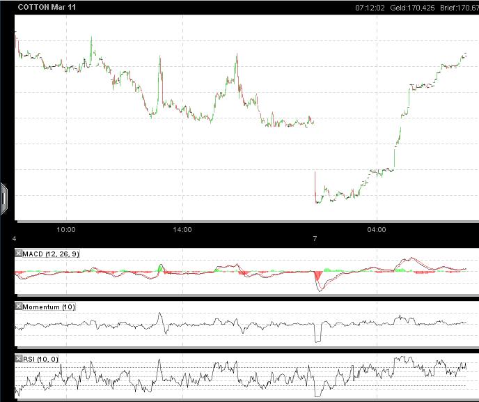 Rückblick: Der Future auf Baumwolle befindet sich seit November 2008 in einer Rallybewegung, welche sich seit Mitte 2010 nochmals deutlich beschleunigt. In einer extrem steilen Rally wurden das 2008er Hoch bei 91,38 sowie das Hoch aus 1995 bei 114,65 US-Cent direkt überwunden.